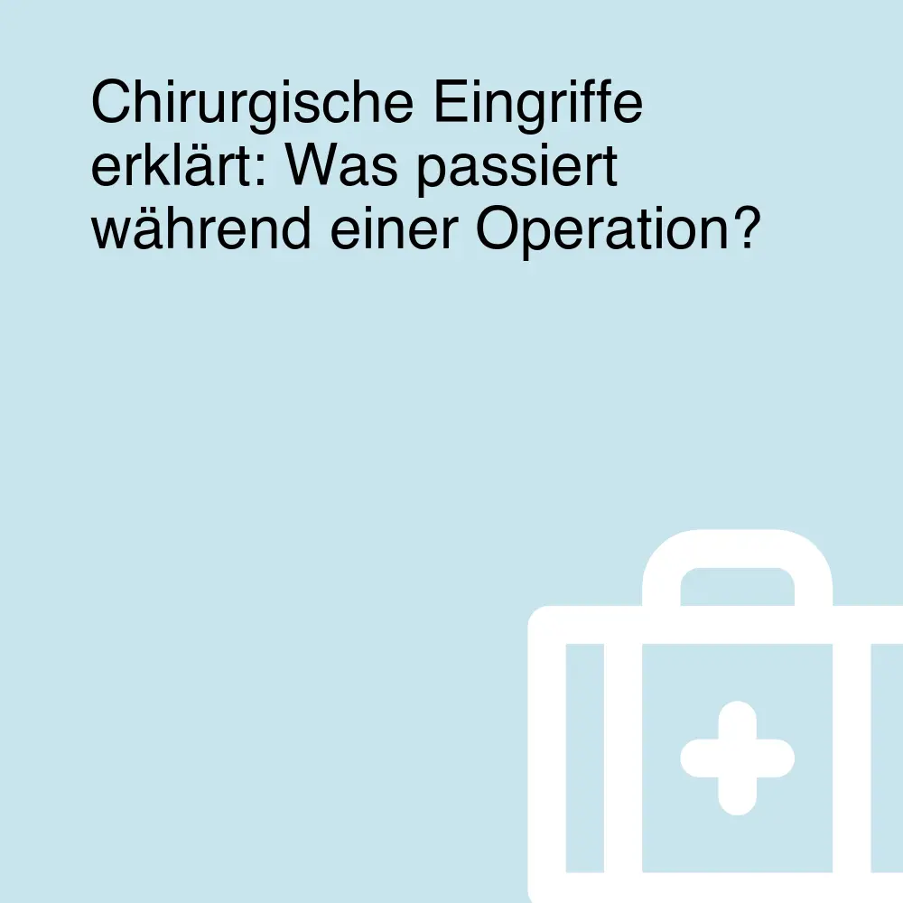 Chirurgische Eingriffe sind komplexe medizinische Verfahren, deren Verständnis für Patienten von großer Bedeutung sein kann. Die verschiedenen Phasen einer Operation, von der Vorbereitung über die Narkose bis zur Nachsorge, spielen dabei eine entscheidende Rolle. Es empfiehlt sich, alle Schritte im Vorfeld zu klären und offene Fragen mit den behandelnden Ärzten zu besprechen. Zudem ist es ratsam, sowohl die physischen als auch die emotionalen Aspekte der Operation zu berücksichtigen. Insgesamt sollte das Ziel stets sein, die bestmögliche Patientenversorgung zu gewährleisten und dazu beizutragen, dass Patienten sich während des gesamten Prozesses sicher und gut informiert fühlen.